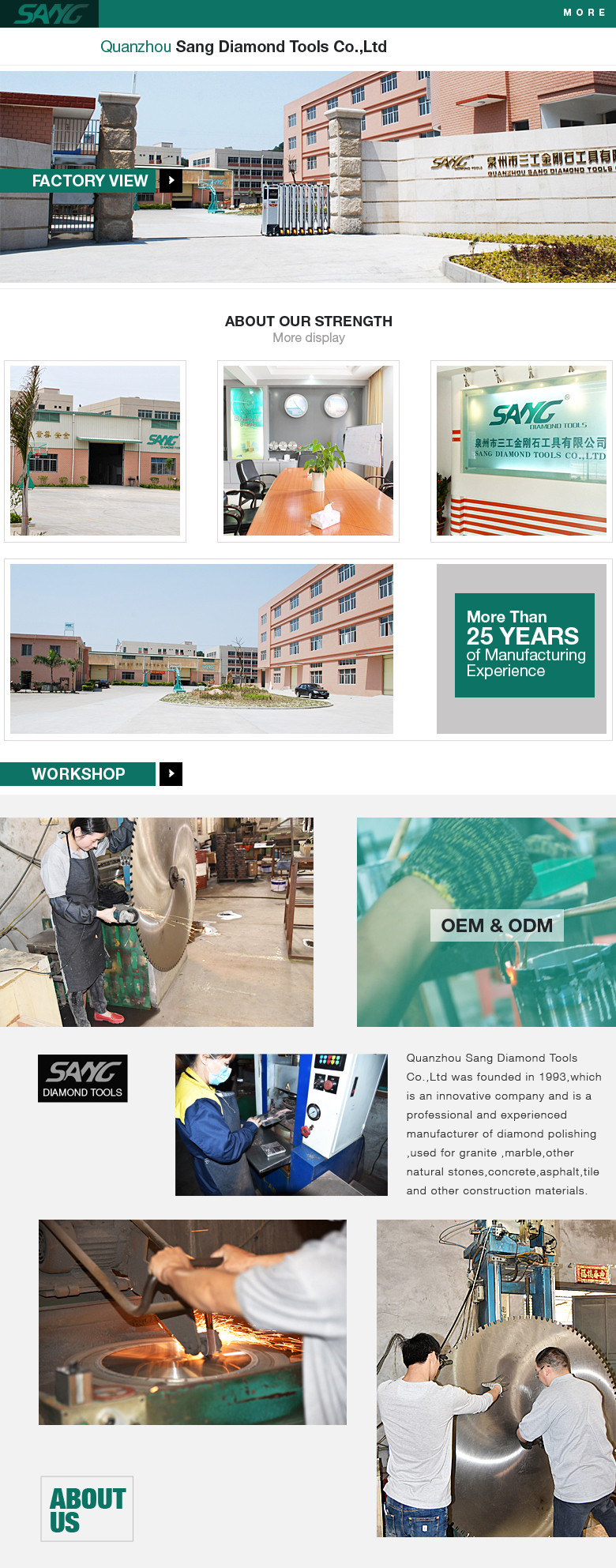 digunakan untuk mesin penggiling lantai tujuan umum (klindex / cps / asl / edco, dll) ikatan kekerasan: penggilingan x-lunak, lunak, normal, keras, x-keras ukuran grit: 6 ~ 200 #, seperti yang disesuaikan.